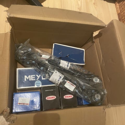BMW f11 fjäderben fram med kapade sänkningsfjädrar. Har även stötdämpare bak okänt skick.