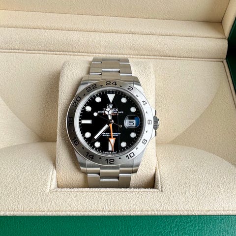 Tänkte kolla intresset för att sälja min Rolex Explorer II 216570, årsmodell 2010. Klockan är nyligen servad hos Nymans Ur i Stockholm (augusti 2025) och är i toppskick.