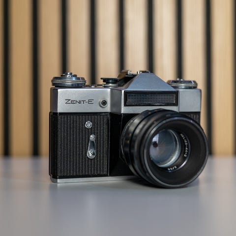 Zenit ET Systemkamera med Helios-44M-6 58mm f/2 Objektiv