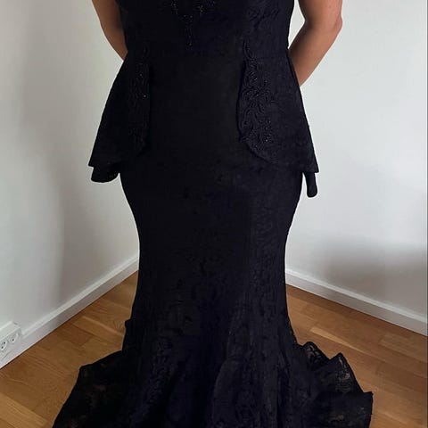 Klänningen köpt från Dressyl klänningsbutik. Festklänning i storlek M för kvinnor, tillverkad i grått tyllmaterial. Klänningen är designad för festliga tillfällen och har en elegant och luftig struktur.