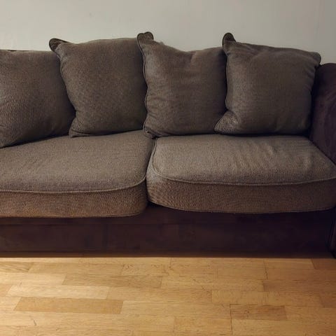 Soffa, Gardiner, bord. Och ett TV-bänk.