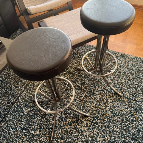 2 barstolar med lite repor . Sköna att sitta på. Sitthöjd ca 67 cm