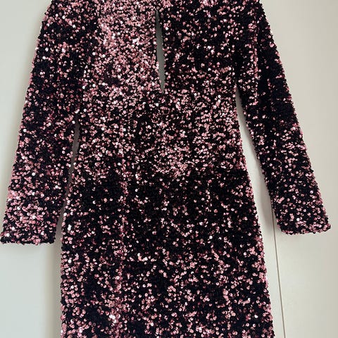 Zara party-/cocktailklänning i storlek S med flerfärgad paljettmaterial. Klänningen har korta puffärmar och en figurnära passform, lämplig för festliga tillfällen.