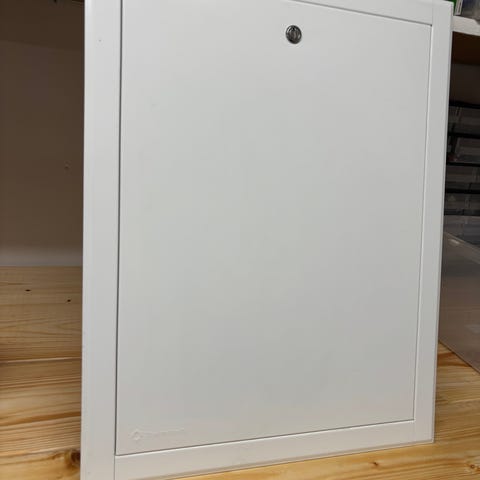 El mätar skåp fasad Garo GML-T Mätarskåp IPNE Tom Träplåt, tillverkad av metall med grå färg. Produkten är en tom mätarskåp med måtten cirka 40 cm i bredd, 45 cm i höjd och 20 cm i djup. Den är avsedd för installation av elmätare och har en låsbar dörr för säker åtkomst.