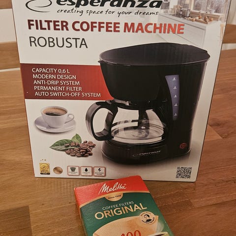 Family Kaffebryggare i vit färg. Kompakt design för bryggning av kaffe. Lämplig för hemmabruk.