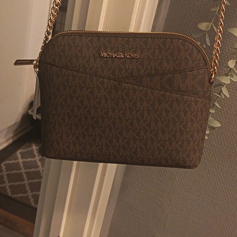 Michael Kors Axelväska tillverkad i rött läder. Väskan har en kedjerem och är avsedd för kvinnor. Den har en kompakt design med ett huvudfack och detaljer i guldton.pris kan diskuteras de kommer band med till väskan 🌸☺️