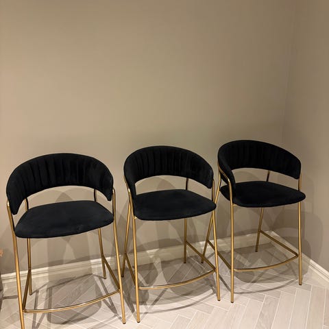 Barstolar inköpta 2021 från newport, svarta med svart sammet. Köptes då för 699:- styck. Båda säljs nu för 600:- ihop.
