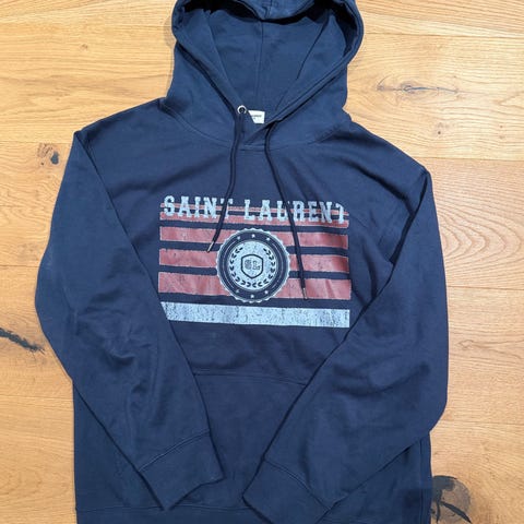 Saint Laurent Hoodie för herrar i storlek S. Tillverkad av bomull i svart färg. Fantastisk hoodie men tyvärr för liten för mig därav säljer jag den
