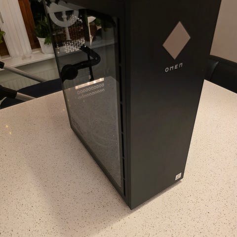 Corsair SPEC-OMEGA datorchassi i vit färg med sidopanel i härdat glas. Chassit har en modern design med god ventilation och plats för flera komponenter. Passar för stationära datorer och erbjuder utrymme för kylning och kabeldragning.