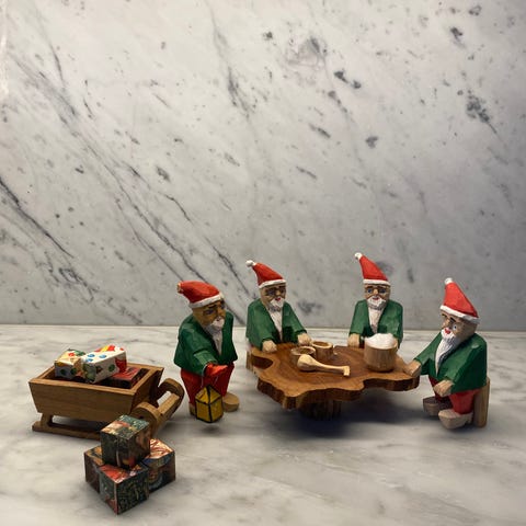 Två stycken Tomtar med avtagbara kläder i ca 27cm hög .