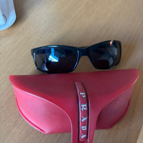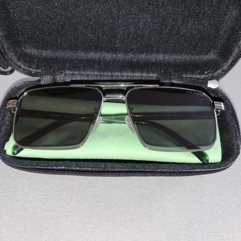 Snygga glasögon från Prada vintage med rektangulära linser och tunn gulfärgad metallbåge . Kommer med svart fodral & putsduk ingen orginalhandling kvar . Fashion : shades Märke : Prada Modell : SPR 53E färgkod : SAK-7H1