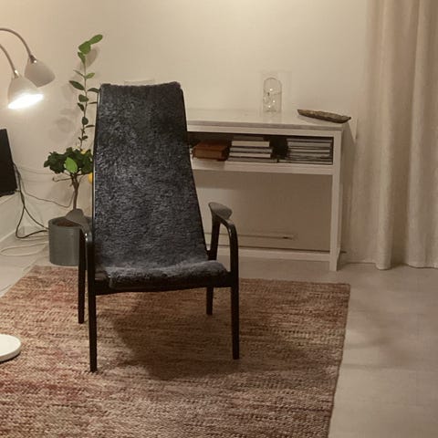 Lamino fåtölj + pall Oljad ek Fårskinn Espresso