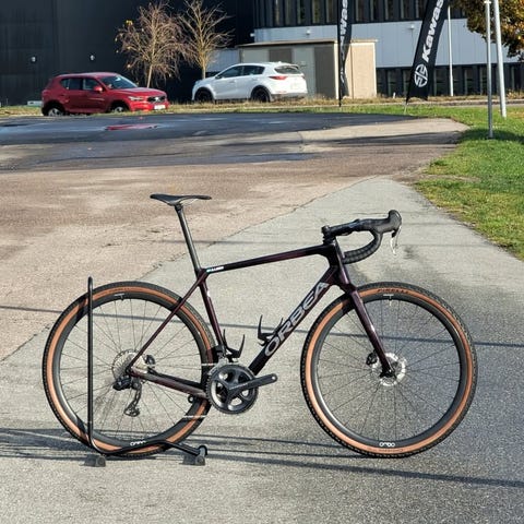 Orbeas helt nya, lätta Race-gravel med integrerad aero-cockpit, GRX Di2 (2x12) och OQUO RC 30 Team kolfiberfälgar.