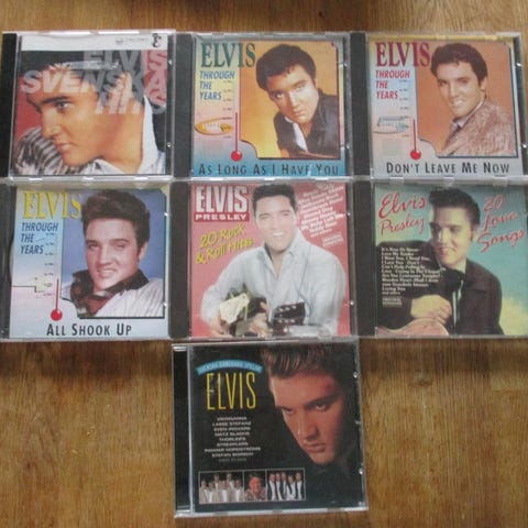 Elvis Presley CD-box set med tre skivor innehållande låtar som "Hound Dog", "That's All Right Mama" och "Love Me Tender". Boxen är i standardstorlek och har omslag med bild på Elvis Presley.