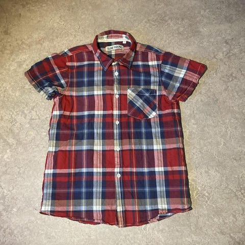 Ny grå randig kortärmad skjorta i amerikansk storlek XL (14)