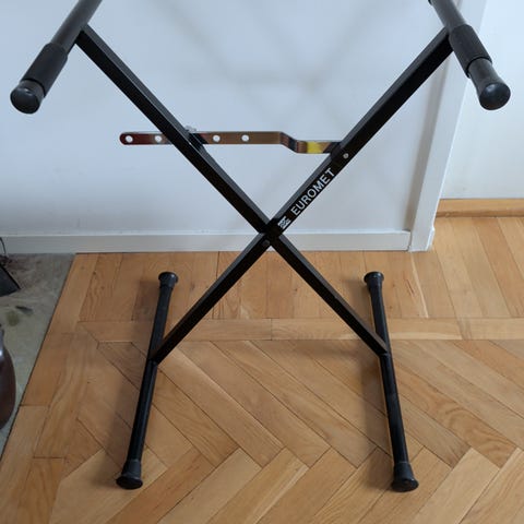 Keyboardstativ med justerbar höjd. Modellen är kraftig och klarar större elpianon.