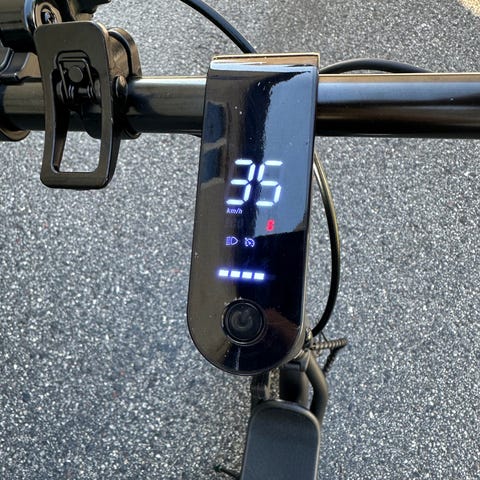 Skärminformation: Aktuell hastighet, batterinivå, farthållare, strålkastare, aktivt läge, körd sträcka, etc.