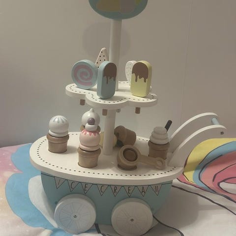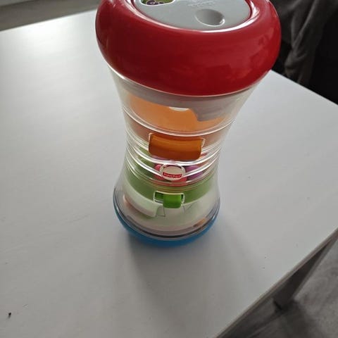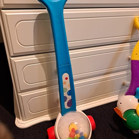 Fisher-Price barnleksak i form av en gåvagn med pelikanmotiv. Tillverkad i plast med färgglada detaljer i blått, gult, vitt och orange. Designad för barn att skjuta och dra under lek. Det blinkar, spelar musik, ljud av havet och måsar.