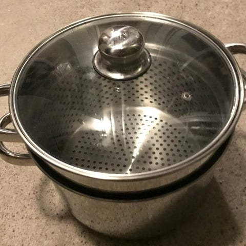 Stor pastagryta med ånginsats och lock (3 delar), med kartong.