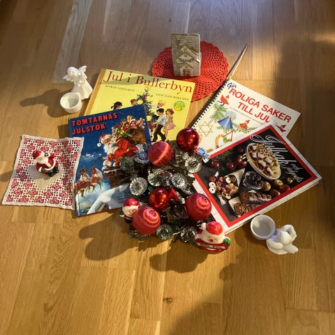 Liten trätavla med gammaldags julkort