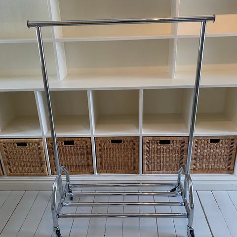 Klädställningen är stabil och i gott skick. Den bär upp till 20 kg.