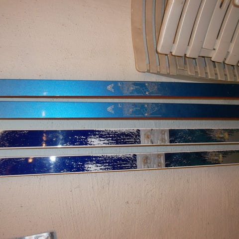 Nr1 (till vänster): Elan Variant Fiberglass med stålkant och kabelbindning. Längd 210cm