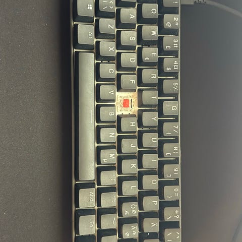 Mekanisk keyboard, använd men i bra skick. Behöver rengöras helt genom att ta bort alla keycaps. Helt fungerande!!