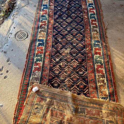 Mycket vacker matta. Enligt uppgift Kelim men osäker på ursprungsland.