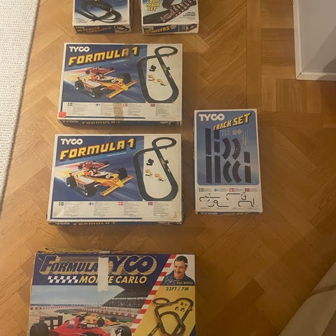 Tyco bilbanor. 2 hela set + 2 extra lådor