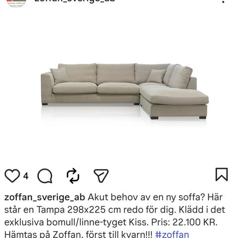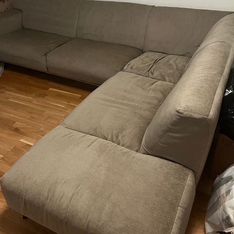 Samt jag har sprätt upp en liten del på ca 5cm i hörnmodulen under rygg kudden ( ingen som syns eller förstör funktionen ) för att fylla på med ytterligare stoppning så den var lite nedsutten i den delen när jag köpte soffan.