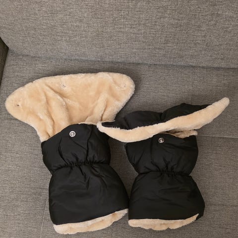 Handvärmare för barnvagnshandtaget från Bozz. Svart med fuskpäls.