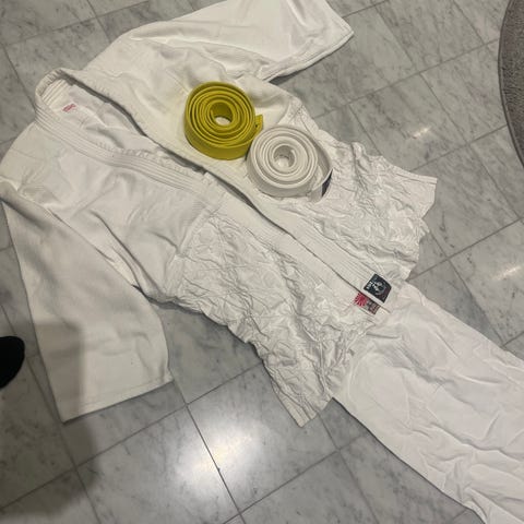 Dräkt för judo, karate eller jujutsu. storlek 170. Sparsamt använd 300:-. Benskydd storlek M 200:- Ring helst eller skicka sms 070-6303803