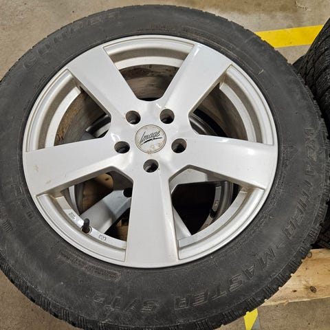 Nissan Däck med fälgar i storlek 16 tum. Fälgarna är av metall.