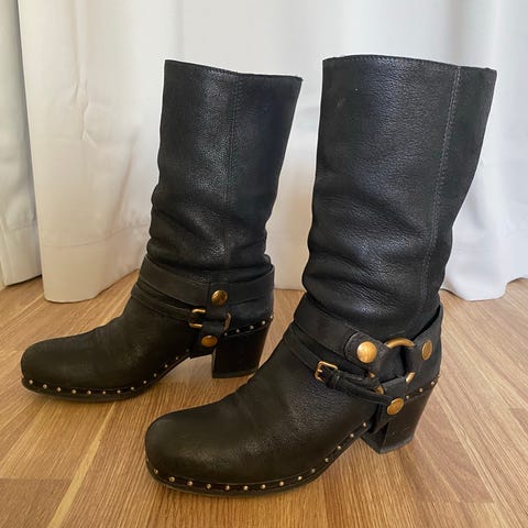 Miu Miu stövlar i storlek 39, tillverkade i svart mocka och läderapplikationer. Stövlarna har en dragkedja på insidan för enkel på- och avtagning. Obs: överdelen är smal.