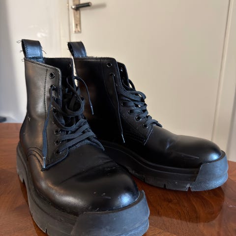 Stövlar i svart färg, storlek 44. Tillverkade i läder med klassisk snörning och robust sula. Passar för vardagligt bruk och ger stöd och komfort.