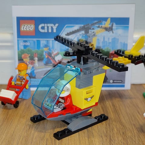 Komplett. Första sidan på bygginstruktionerna är tejpad.