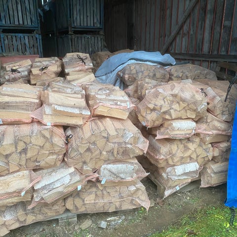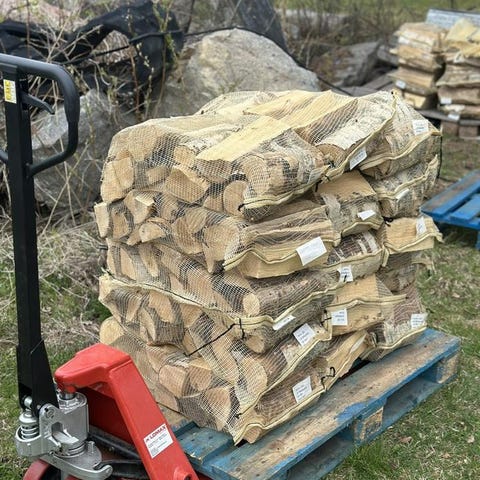 Björkved i 40 liters säckar.