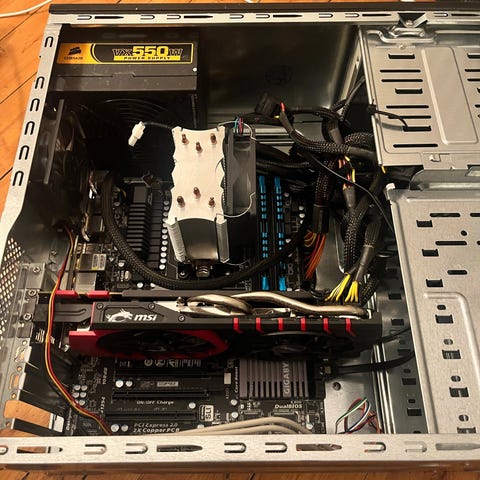 Corsair Gamingdator Tower i svart färg. Chassit är av standardstorlek med sidofönster i glas. Passar för stationär användning och spel.