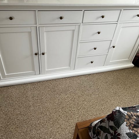 Byrån är låg som passar perfekt ha hylla ovan eller spegel/tavla.