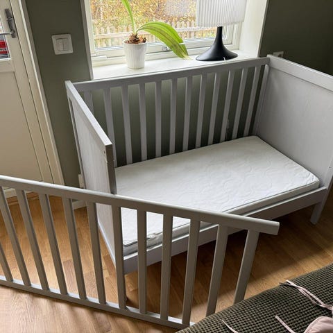 Spjälsäng med madrass och madrasskydd