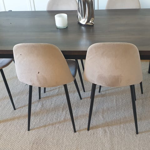 Matgrupp köpt för 1,5 år sedan från trademax, stolarna är i nyskick och bordet har lite repor. Bordet kan förlängas med en extra bord underifrån. Jag säljer 4 stolar med bordet.