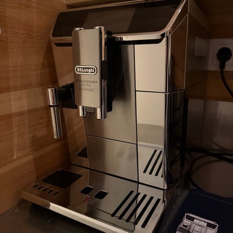 DeLonghi Dinamica Plus (370.95) Espressomaskin i silverfärg och gott skick. Utrustad med en mjölkskummare för att göra cappuccino och latte. Kompakt design med digital display och flera brygginställningar som även kan ändras för att passa den personliga smaken. Flera användare kan programmera maskinen för sin smak. Köpt på Tretti.se för 7.900:- för två år sedan. Kvitto finns. Nyservad.