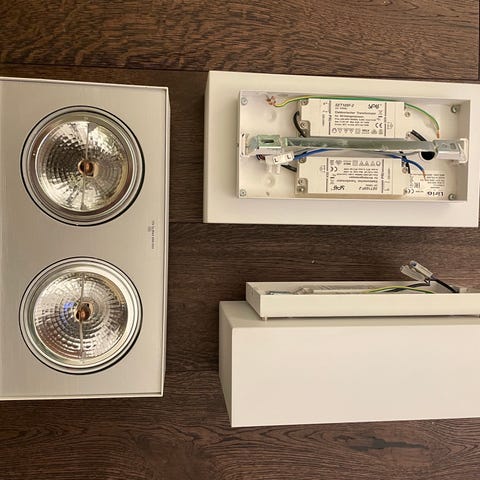 Vi gör om hemma och ska således byta ut taklamporna i hallen. Lamporna är i superfint skick, mer eller mindre nyskick, utan märken eller skador.
