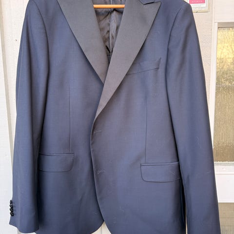Säljer en exklusiv Tom Ford smokingkavaj i svart sammet, modell Fit T, storlek 54R. Tillverkad i Schweiz – lyxig passform och klassiska breda slag.