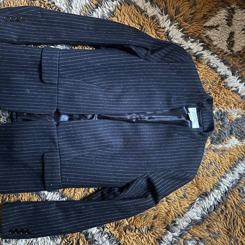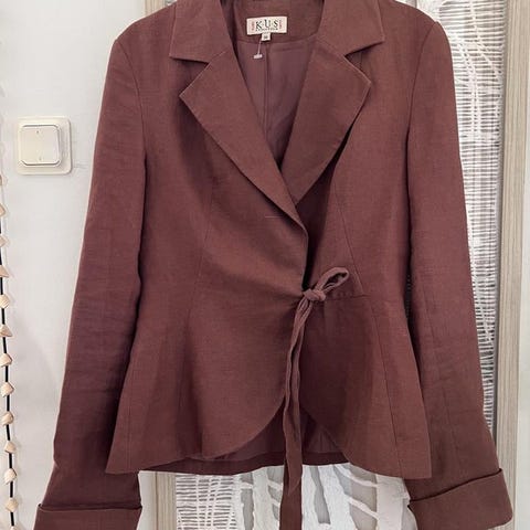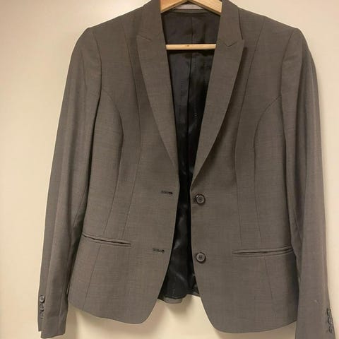 Hope kavaj i grå färg, tillverkad av polyester. Passar damstorlek 36. Kavajen har en knappstängning framtill och är designad för formellt eller vardagligt bruk.