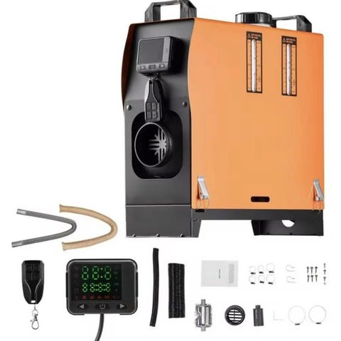 12 volt dieselvärmare, komplett med 4,5 liters tank, pump, ljuddämpare, insugsrör, avgasrör, LCD styrenhet, fjärrkontroll, luftrör med anslutning och monteringsdetaljer. Bränsle förbrukning 0.12-0.48 l/h. Mått i mm: H 365, B 153 , L 366. Passar perfekt i bilen, båten, husvagnen, husbilen, lastbilen etc.
