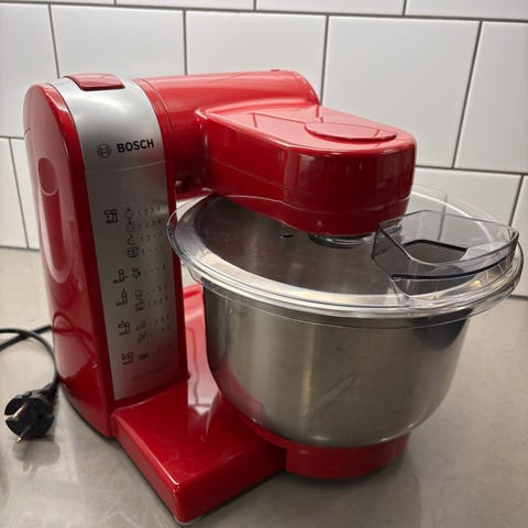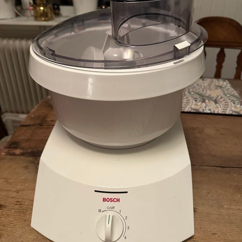 Kraftfull assistent som klarar större degar. Nära nyskick, använd på sin höjd 15 ggr. Står stadigt på bänken, kan diskas i maskin.