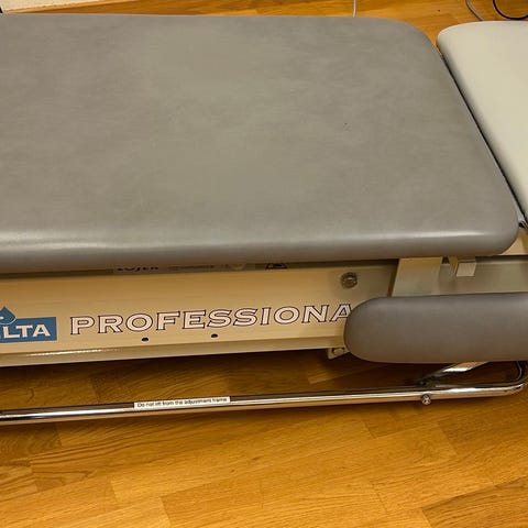 FysioTech massagebänk. Elektriskt höj och sänkbar med dubbla fotpedaler, Justerbara arm och huvudstöd samt möjlighet att bredda främre liggytan.