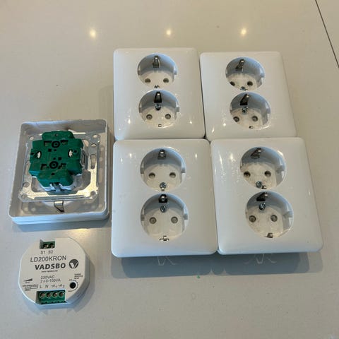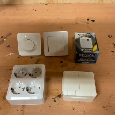 Ett flertal som blivit över. Två dimmrar. Dubbel strömkontakt en kontakt är fjädrande. Passar perfekt till dimmer.Vägguttag. Allt säljs i klump. Se på bilden vad ni får. Säljer inte enskilt.