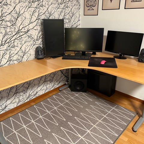 Hörnskrivbord som skulle behövas slipas/målas om. Se näst sista bilden.